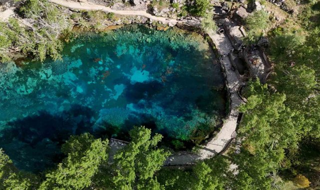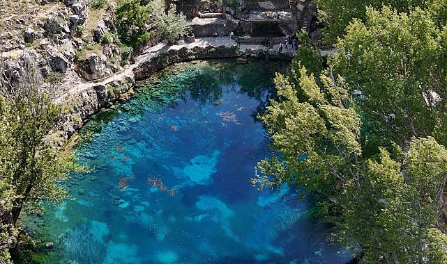 Tabiat harikası Gökpınar Gölü, turkuaz tonu ile herkesi hayran bırakıyor