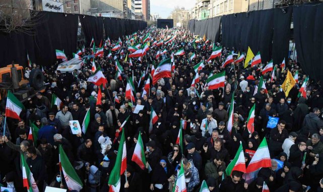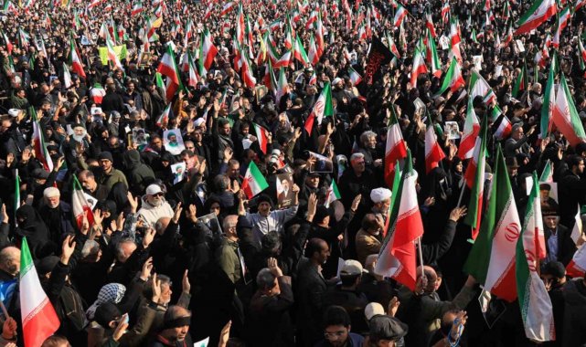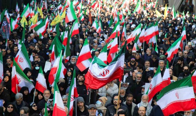 İran bayraklarının dalgalandığı meydanda ABD ve İsrail'in saldırılarına tepki gösteren halk, "Kahrolsun İsrail" ve "Kahrolsun ABD" sloganları attı. İran'ın birlik ve beraberliğine vurgu yapan kalabalık ayrıca "Rehberimiz Hamaney", "Allah'ın eli üzerimizde, Hamaney liderimizdir" ve "Şehit imamımızın yolu devam ediyor" yazılı pankartlar taşıdı.