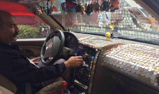 Tahran'da 40 yıldır taksicilik yapan İbrahim Fekharyan, yerli ve yabancı turistlerin kendisine hatıra olarak verdiği paraları 'seyyar para müzesi'ne dönüştürdüğü taksisinde sergiliyor. Fekharyan'ın aracında eski Türk parası da bulunuyor.