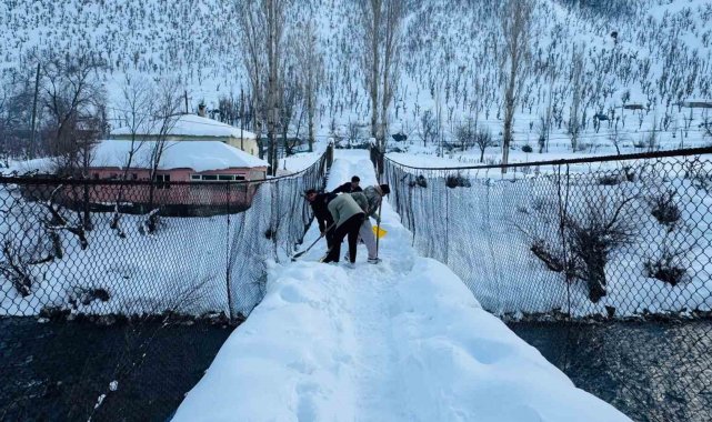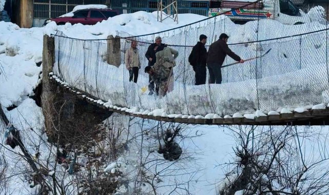 Şırnak'ın Beytüşşebap ilçesinde 52 yıl önce yapılan asma köprüye gözü gibi bakan köylüler kış aylarında kar nöbetleri tutuyor. Kar kalınlığının 2 metreyi bulduğu ilçede vatandaşlar köprünün kırılma tehlikesine karşı temizlik çalışması başlattı.