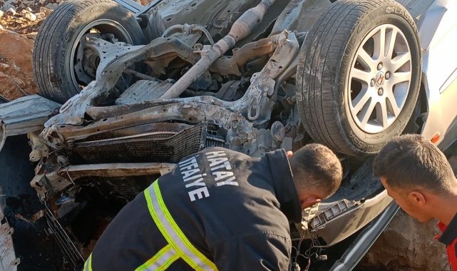 Hatay'da sürücüsünün kontrolünü kaybettiği otomobil, takla atarak ters döndü. Kazada araç sürücüsü yaralandı.