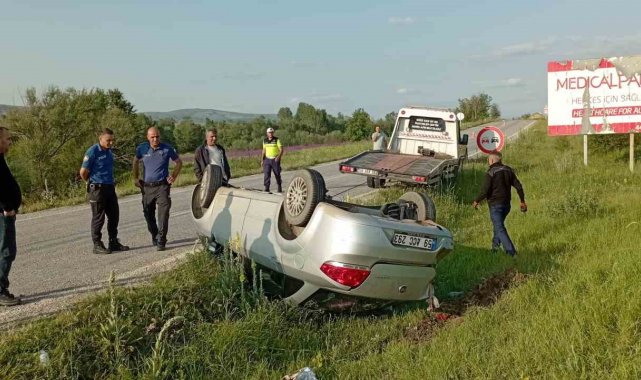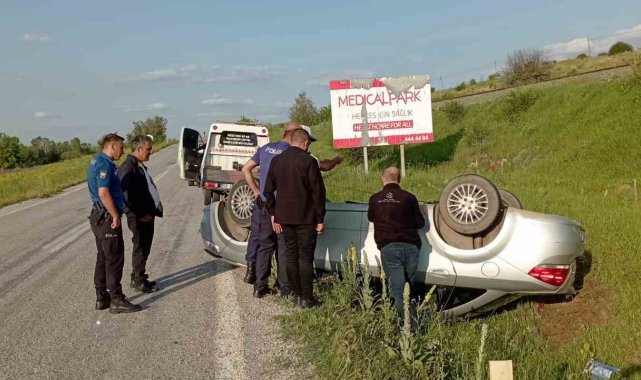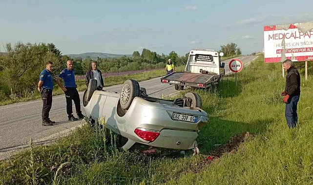 Direksiyon hakimiyetini kaybeden sürücü kullandığı araçla takla attı. Kazada sürücü hafif şekilde yaralandı.