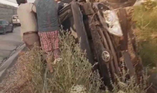 Takla atan atarak yan yatan otomobildeki 4 kişi yaralandı