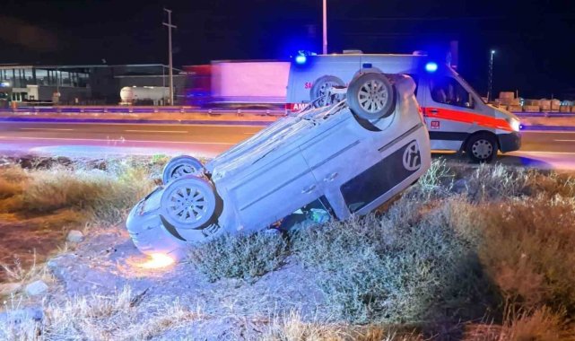 Takla atan hafif ticari aracın sürücüsü kaçarak kayıplara karıştı