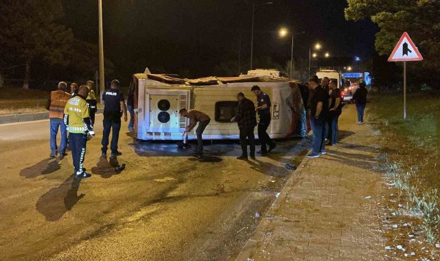 Kaza, dün akşam saat 23.00 sıralarında Eskişehir Çevre Yolu'nda Ankara istikametinde meydana geldi. Edinilen bilgilere göre; M.M.Ö. isimli erkek şahsın idaresindeki 26 M 0067 plakalı minibüs, sürücüsünün direksiyon hakimiyetini kaybetmesi sonucunda orta refüjdeki taşlara çarparak takla attı. Yaşanan kazada minibüs kullanılamaz hale gelirken, sürücüsü yaralandı.