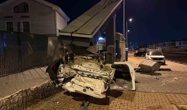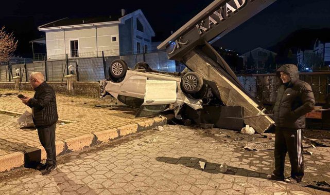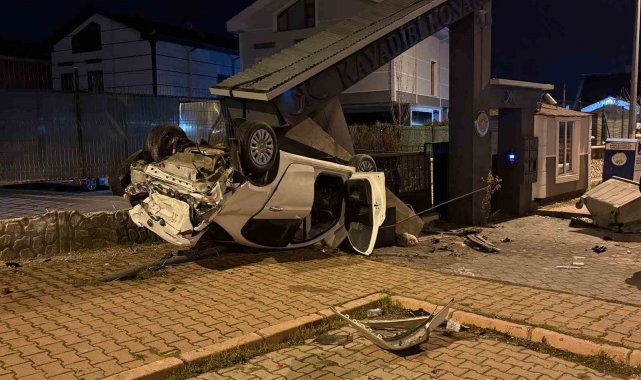 Takla atan otomobil sitenin girişini yıktı: 1 yaralı