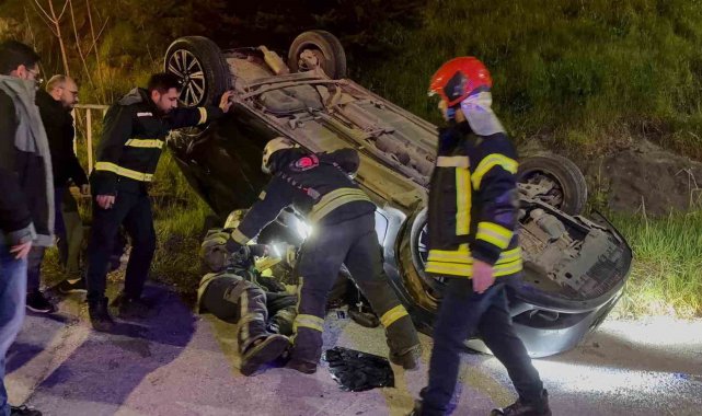 Takla atan otomobilde 2 kişi yaralandı, diğer sürücü kaçtı