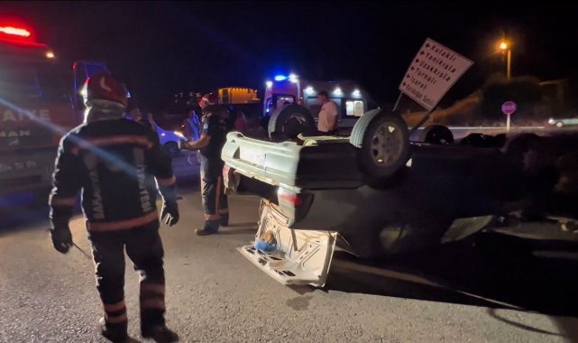 Takla atan otomobilde sıkışan sürücüyü itfaiye ekipleri kurtardı