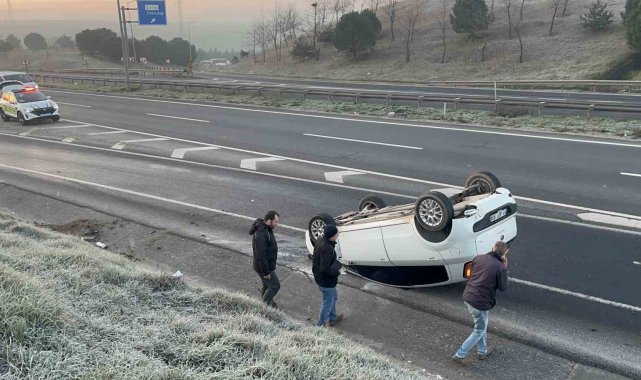 Tekirdağ'da virajda kayarak takla atan otomobilin sürücüsü ve iki arkadaşı, emniyet kemeri sayesinde kazadan yara almadan kurtuldu.