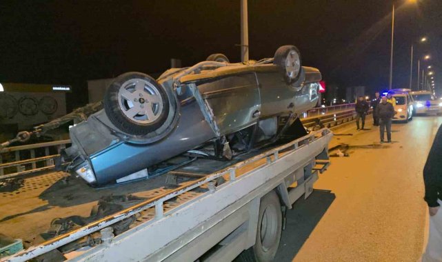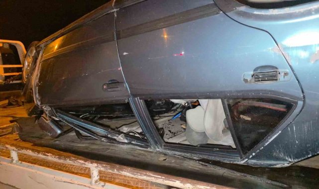 Takla atan otomobilden burunları bile kanamadan çıktılar