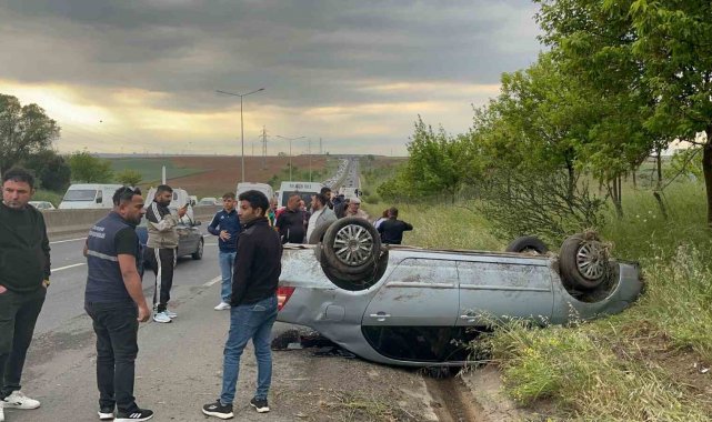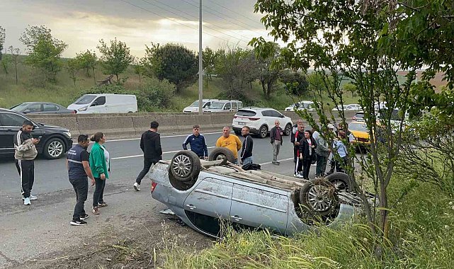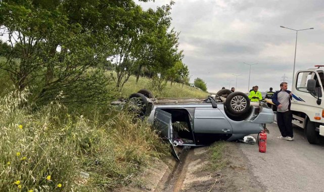 Tekirdağ Çorlu'da bir sürücü, emniyet kemeri takması sayesinde takla atan otomobilden yara almadan çıktı.