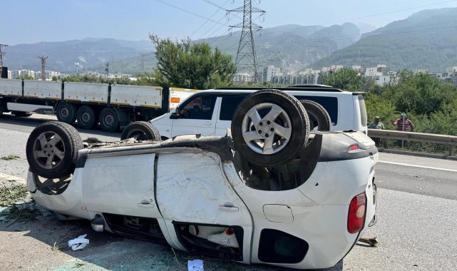 Hatay'da takla atarak ters dönen otomobilin sürücüsü yaralandı.