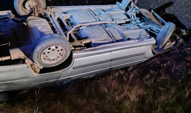 Afyonkarahisar'da kontrolden çıkarak takla atıp ardından sürüklenerek şarampole giren otomobilin sürücüsü kazayı şans eseri yaralı atlattı.