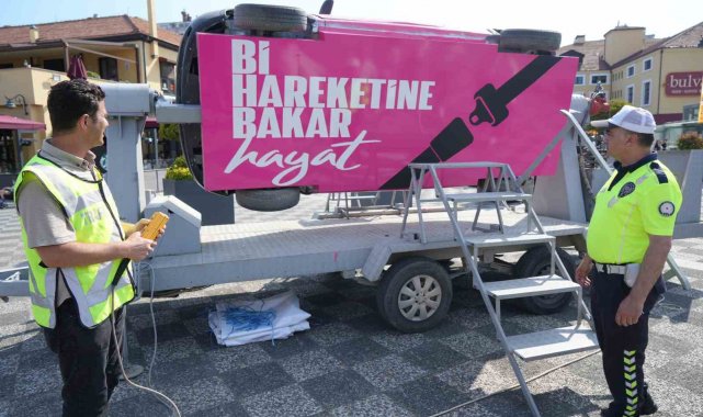 Takla atan simülasyon aracında emniyet kemerinin önemi uygulamalı anlatıldı