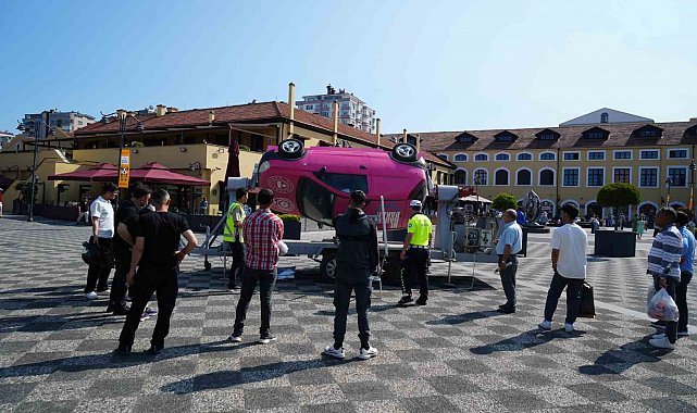 Samsun Emniyet Müdürlüğünce yürütülen trafik bilgilendirme faaliyetleri kapsamında, özel olarak hazırlanan bir araçla, emniyet kemeri takmadan araç kullanmanın tehlikelerine dikkat çekildi. İlkadım ilçesinde bir alışveriş merkezinin etkinlik alanından kurulan simülasyon aracı kontrollü şekilde takla atarken, emniyet kemerinin hayat kurtarıcı rolü katılımcılara uygulamalı olarak anlatıldı. Etkinlik sonrası konuşan çocuklar, daha önce teorik olarak bildikleri emniyet kemerinin önemini bu deneyimle derinden kavradıklarını ifade etti.