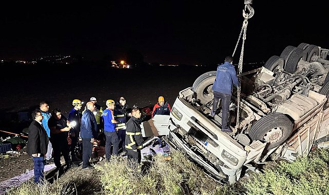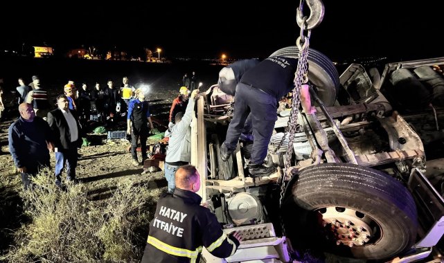 Hatay'da takla atarak ters dönen tırdaki 1 kişi öldü, 1 kişi yaralandı.