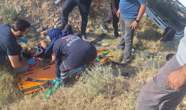 Takla atarak ters dönen hafif ticari araçtaki 7 kişi yaralandı