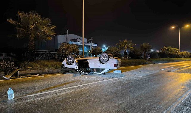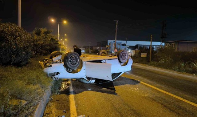 Hatay'da takla atarak ters dönen otomobilin sürücüsü yaralandı.