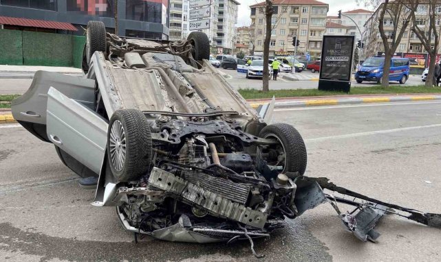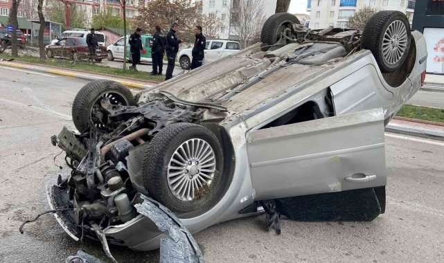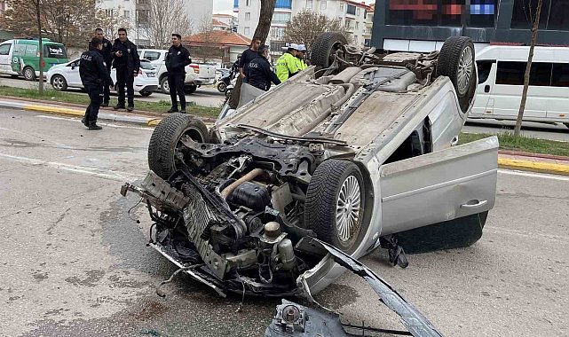 Takla atıp hurdaya dönen otomobilden burnu bile kanamadan kurtuldu