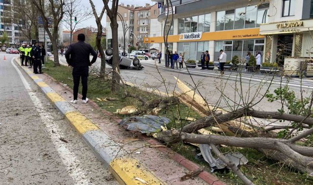 Aksaray'da yayaya çarpmamak için sürücünün direksiyonu kırdığı otomobil, önce refüje çıktı sonra 2 ağacı devirip takla attı. Hurdaya dönen otomobilin sürücüsü kazadan burnu bile kanamadan kurtuldu.