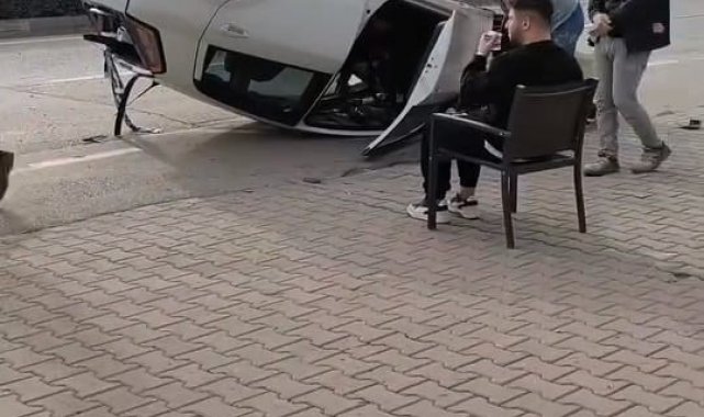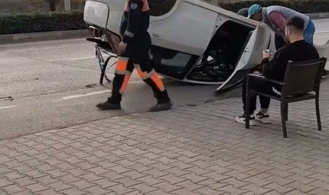Taklalar atan otomobilden burnu kanamadan çıktı