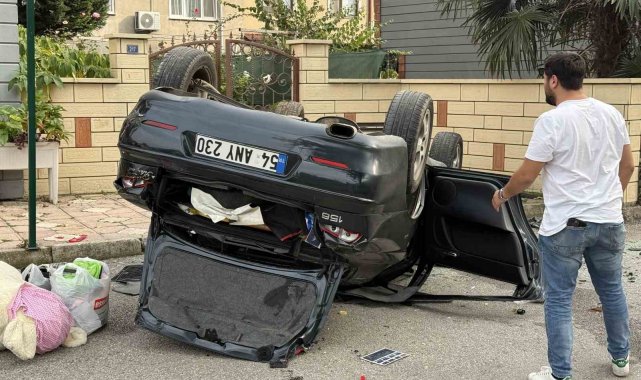 Bahçelievler Mahallesi 922. Sokak'ta seyir halinde olan H.Y. (24) idaresindeki 54 ANY 230 plakalı otomobil, sürücüsünün direksiyon hakimiyetini kaybetmesi sonucu kontrolden çıktı. Otomobil, taklalar atarak yaklaşık 3 metre yükseklikten alt sokağa devrildi. Kazada hurdaya dönen otomobilden sürücü H.Y., burnu kanamadan kurtuldu.