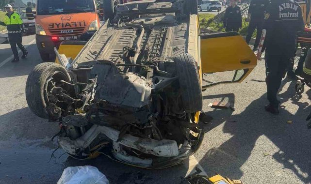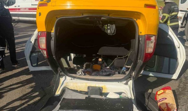Taksi bariyerlere çarpıp takla attı: 2 yaralı