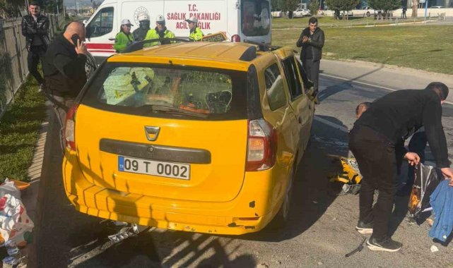 Aydın'ın Efeler ilçesinde bariyerlere çarpan taksi takla atarak ters dönerken, araç içerisinde bulunan 2 kişi yaralandı.