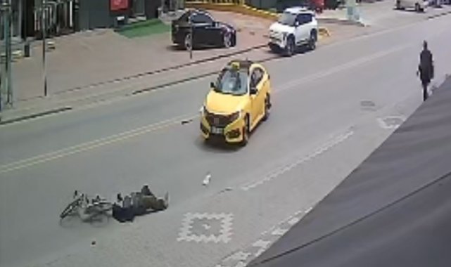 Konya'da yolun karşısına geçmeye çalışan bisiklet sürücüsü taksinin çarpması sonucu yaralandı. Kaza anı ise güvenlik kamerasına yansıdı.