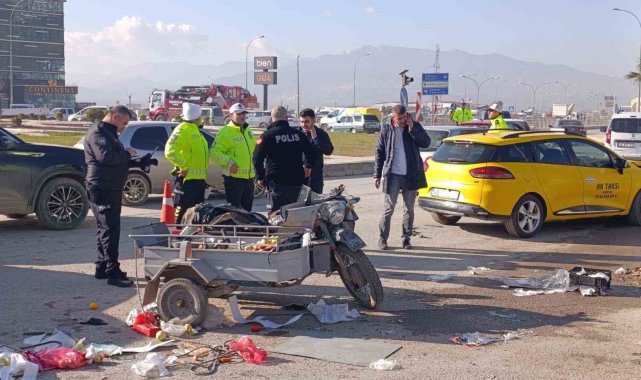 Kahramanmaraş'ın Onikişubat ilçesinde ticari taksi ile sepetli motosikletin karıştığı kazada 2 kişi yaralandı.