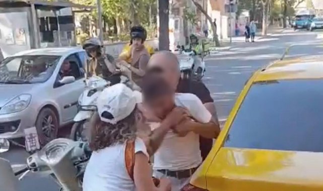 Trafikte şiddet olayları tüm uyarılara ve yüksek cezalara rağmen devam ediyor. Bunun son örneği dün İzmir'de yaşandı. İzmir Bornova'da Ege Üniversitesi kavşağında iddiaya göre motosiklet sürücüsü genç ile ticari taksi sürücüsü arasında yol verme anlaşmazlığı yaşandı. Motosikletten inen sürücü kaskını çıkararak taksiciye saldırdı. Cama defalarca vurarak kırmaya çalışan motorlu şahıs ile otomobilden inen taksici arasında yumruklaşma başladı. Kavga, çevredeki vatandaşların araya girmesiyle son buldu. Motosikletli şahıs, vatandaşların müdahalesiyle olay yerinden güçlükle uzaklaşırken yaşananlar ise cep telefonu kamerasıyla kaydedildi. Emniyet görevlileri olay yerine gelmeden her ikisi de yoluna devam etti. Öte yandan tarafların birbirinden şikayetçi olmadığı öğrenildi.