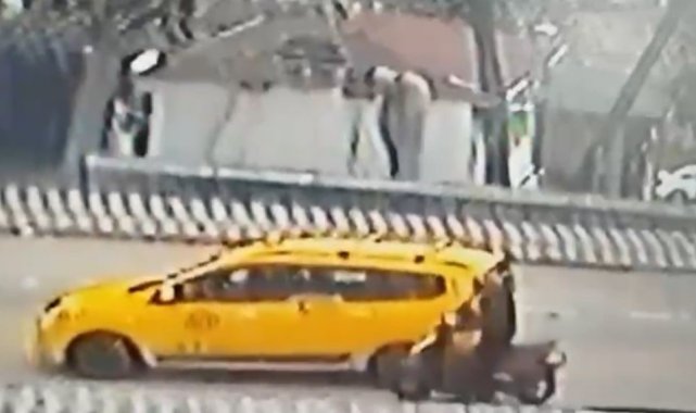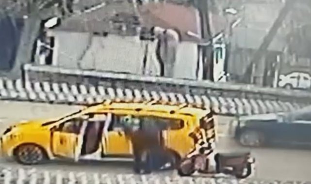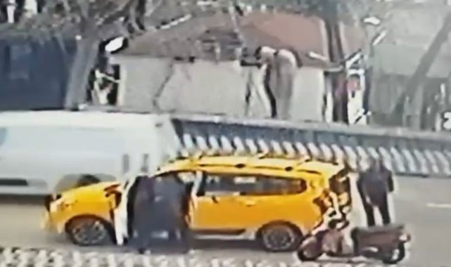 Bursa'nın Osmangazi ilçesi Çekirge Caddesi üzerinde seyir halinde olan taksi sürücüsü ile motosikletli bir sürücü arasında iddiaya göre, yol verme nedeniyle tartışması çıktı. Taksici bir süre ilerledikten sonra zıtlaştığı motosiklet sürücüsü için araçtan kavgaya tutuştu. Araçlarından inen taraflar tekme tokat birbirine girdi. O anlar bir işyerine ait güvenlik kamerasıyla kayda alınırken, kavgayı takside bulunan müşteri ayırdı.