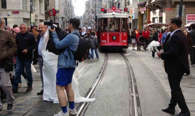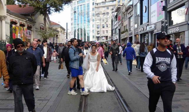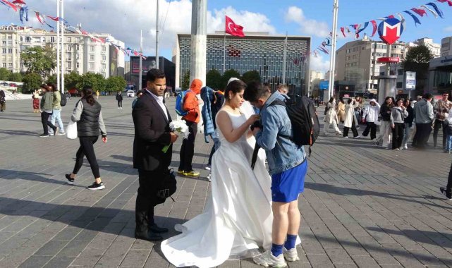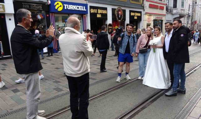İstanbul'da evlenen İranlı bir çift, Taksim'de turistlerin ve vatandaşların yoğun ilgisiyle karşılaştı. Caddede yürüyen birçok kişi, gelin ve damatla fotoğraf çektirmek için adeta sıraya girdi. Bir turist, evlenen çifte bir miktar para vererek mutluluklarını paylaştı. Taksim'de kestane satan Halit Terazi, "Taksim İstiklal Caddesi turizmin başkenti. Burası çiftler tarafından yoğun ilgi görüyor. Çiftler Taksim İstiklal Caddesi'ni tercih ediyorlar" dedi.