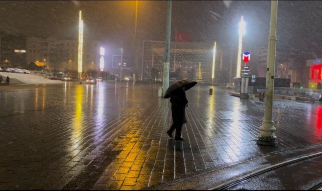 Meteoroloji Genel Müdürlüğü'nün yaptığı açıklama sonrası, İstanbul'un bazı bölgelerinde kar yağışı aralıklarla etkisini gösteriyor. Taksim'de gece saatlerinde kar yağışı başladı. Yoldan geçen vatandaşlar yanlarında şemsiye taşımayı ihmal etmedi. Taksim Meydanı'nda bulunan vatandaşlar etkisini gösteren kar yağışının eşliğinde fotoğraf çekildi.