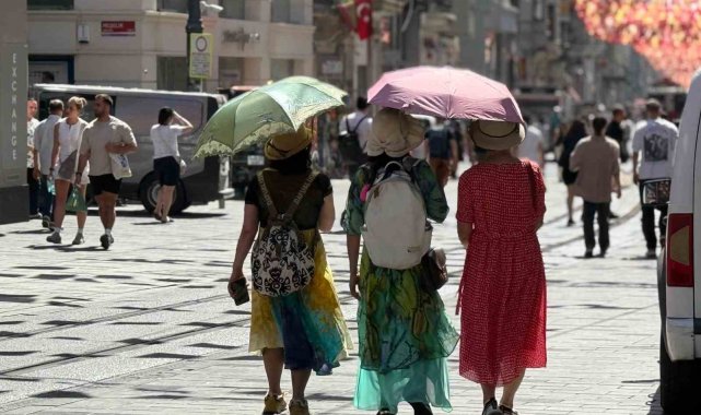 İstanbul'da etkili olan sıcak hava, vatandaşları bunalttı. Taksim Meydanı'nda kimisi şemsiyle gezerken, kimisi ise gölgelik alanlarda serinlemeye çalıştı.