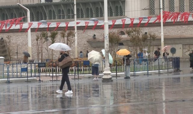Meteoroloji Genel Müdürlüğü'nün uyarılarının ardından İstanbul'da sabah saatlerinden itibaren sağanak yağış başladı. Taksim'de kısa süreli etkili olan sağanak yağışa turistler ve vatandaşlar hazırlıksız yakalandı.