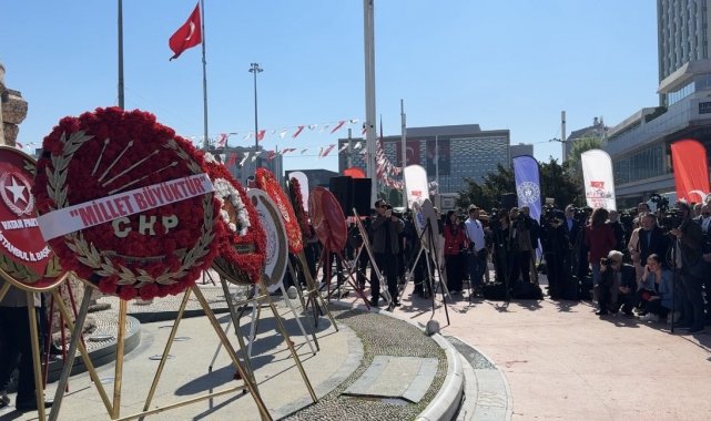 İstanbul Taksim'de 19 Mayıs Atatürk'ü Anma Gençlik ve Spor Bayramı nedeniyle Cumhuriyet Anıtı'na çelenk bırakma töreni düzenlendi.