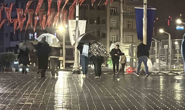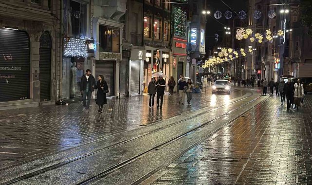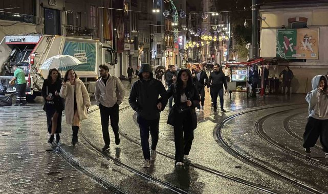 Taksim Meydanı ve İstiklal Caddesi'nde gece saatlerinde yağmur etkili oldu