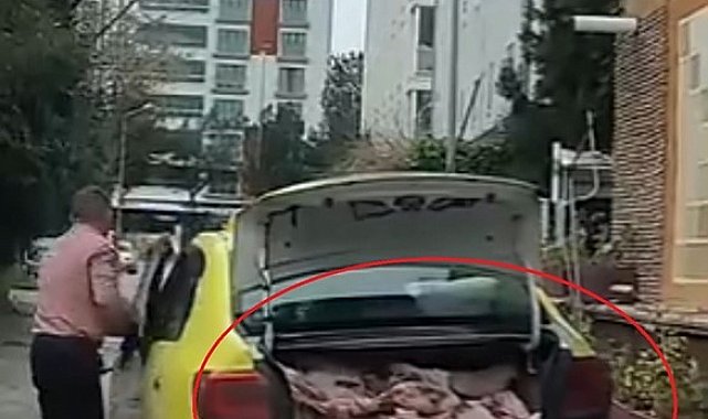 Taksinin bagajında uygunsuz şartlarda et sevkiyatı kameraya yansıdı