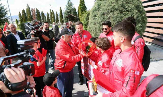 Öte yandan Talas Belediyesi Espor ve İnovasyon Merkezi teknoloji takımları Erkilet Havaalanı'nda Başkan Yalçın ve Talas Kaymakamı Yaşar Dönmez'in yanı sıra aileleri tarafından coşkuyla karşılandı. Karşılamada gençlere çiçekler verilirken, şampiyonlar üstü açık iki katlı gezi otobüsüyle şehir turu yaparak Talas Belediyesi hizmet binasında çalışanlarca alkışlarla karşılandı.