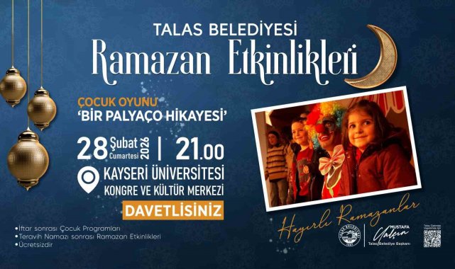 Ramazan etkinlikleri, Kayseri Üniversitesi Kongre ve Kültür Merkezi'nde iftar sonrası çocuk programları ve teravih namazı sonrası sahne etkinlikleriyle ücretsiz olarak gerçekleştiriliyor. Talas'ta Ramazan, birlik ve beraberlik içinde yaşanmaya devam ediyor.