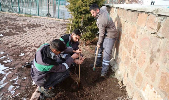 Talas Belediyesi, kırsal mahallelerdeki kamu kurumlarına ait alanlarda ağaçlandırma çalışması başlattı.
