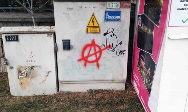 Kamuya ait alanlardan parklarda ve muhtelif yerlerde bulunan elektrik panosu, trafo duvarı ve inşaat çevre koruma çitlerine sprey boyayla çevre ve görüntü kirliliğine yol açtığı tespit edilen A.K. ve H.Y.T.'ye işlem uygulandı.