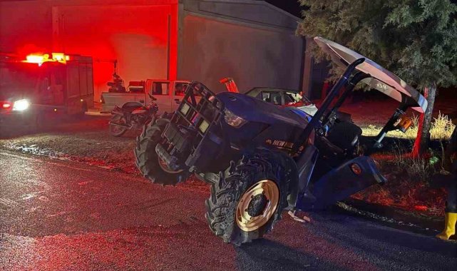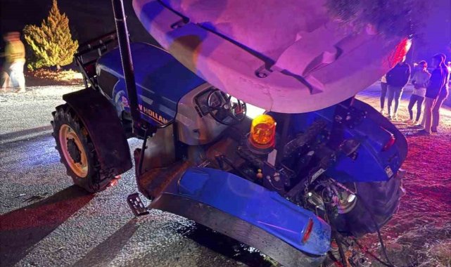 Tali yoldan çıkan traktörle çarpışan araç hurdaya döndü: 6 yaralı