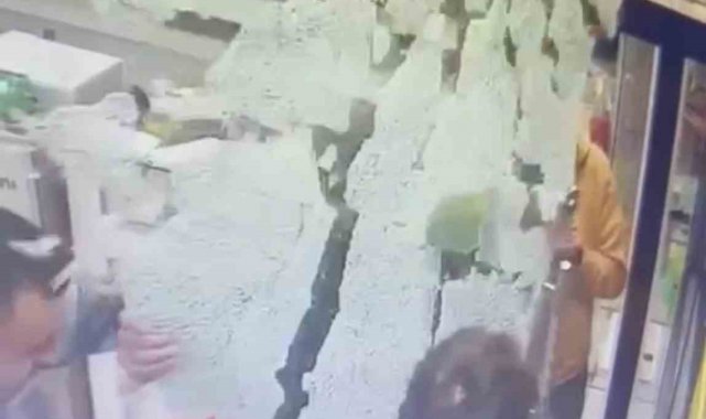 Erbaa ilçesi Cumhuriyet Mahallesi'nde cep telefonu tamirciliği yapan Cafer Tayyar Taras, iş yerinin kapısı bozulunca tamir etmek istedi. Hidroliği onarmak için cam kapıyı söken Taras, kaldırmaya çalıştığı sırada kapı aniden tuzla buz oldu. Hayrete düşen esnaf, bir süre yerinden kıpırdayamadı. O anlar iş yerinin güvenlik kamerasına yansıdı.