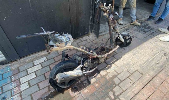 Olay, Çınarlı Mahallesi Önder Caddesi'ndeki bir iş yerinde meydana geldi. İddiaya göre, motosikletin kopan parçasına kaynak yapıldığı esnada kıvılcımlar, benzinle temas etti. Bir anda yükselen alevler motosikleti sardı. İhbar üzerine olay yerine itfaiye, sağlık ve polis ekipleri sevk edildi. Yangın, itfaiye ekiplerince kontrol altına alınarak söndürüldü. Motosikletten geriye ise yalnızca metal iskeleti kaldı.
