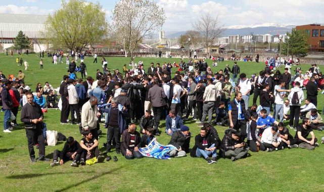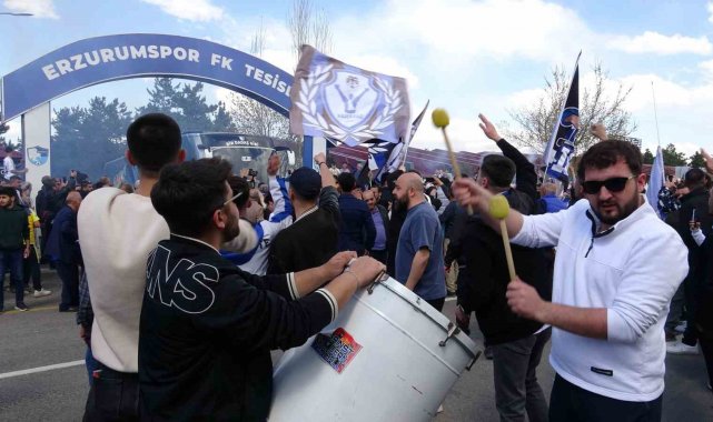 Erzurumspor FK'nın Ümraniyespor maçı öncesi aldığı seyircisiz oynama cezası nedeniyle tribünlerden mahrum kalan taraftarlar, kulüp tesislerinde takımlarını büyük bir coşkuyla maçın oynanacağı stadyuma uğurladı.