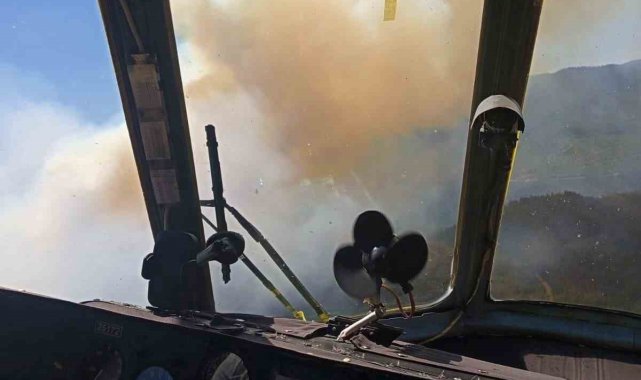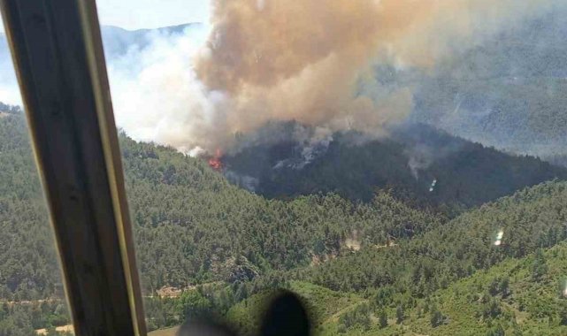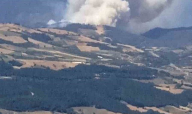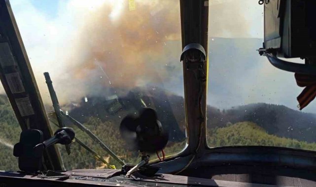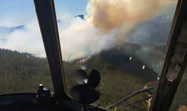 Sakarya'nın Taraklı ilçesinde ormanlık alanda çıkan yangın helikopterden görüntülendi. Ekipler, yangını söndürebilmek için havadan ve karadan seferber oldu.
