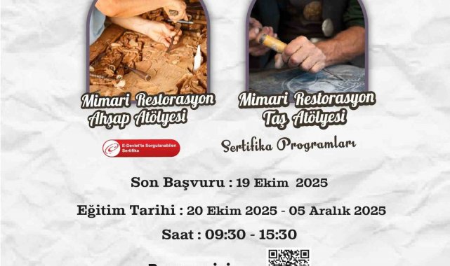 Bir yandan altıncı dönem kayıtlarının sürdüğü, diğer yandan da eğitimlerin devam ettiği merkezde mimari restorasyon ahşap ve mimari restorasyon taş atölyelerinde her yaştan katılımcılara teorik ve uygulamalı eğitimler veriliyor. Talas'ın Zincidere Mahallesi'ndeki tarihi Kız Yetimhanesi müştemilatında bulunan alanda gerçekleştirilen kurslara, herhangi bir ön sınava girmeksizin isteyen herkes kayıt yaptırabiliyor. Başvuruların 19 Temmuz Pazar gününe kadar Kayseri Üniversitesi Sürekli Eğitim Uygulama Araştırma Merkezi'ne yapılacağı, eğitimlerin ise 20 Ekim-5 Aralık arasında gerçekleşeceği kurslar hakkında 0352 432 38 38/42340 numaralı telefondan detaylı bilgi alınabilir.
