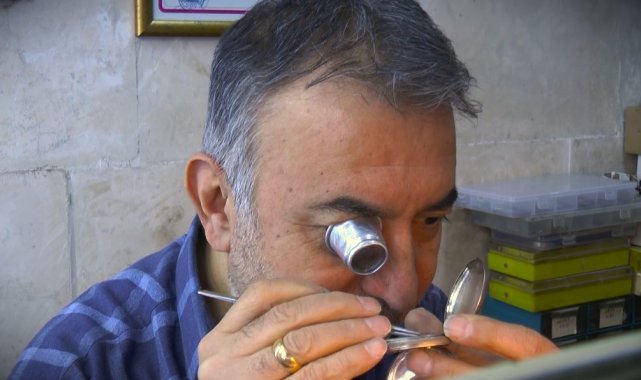 Gaziantep'te babasından kalan 10 metrekarelik dükkanında antika saatleri tamir eden 57 yaşındaki Cengiz Altunbaş, aşkla yaptığı mesleğini ayakta tutmaya çalışıyor.